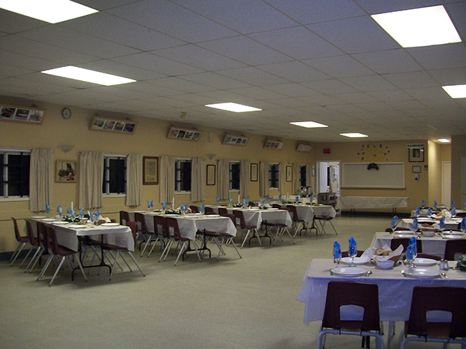 Our spacious hall comfortably seats 125 add our licensed patio and we can accommodate up to 185. Our hall has comfortable acoustics, is easily decorated and a stage suitable for a 5 or 6 piece band. Our large treed yard makes an excellent backdrop for wedding and family photos.